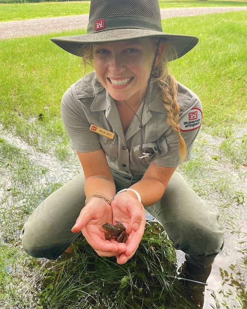 Taylor also worked as a forestry technician for the U.S. Army Corps of Engineers, where she managed floodplain forests, contributed to vegetation plans for island-building projects, and collaborated with agency partners on wildlife monitoring efforts.